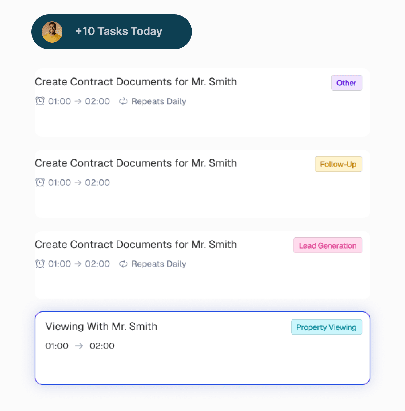 Receive real-time updates on your deals and tasks, all in one place. From client interactions to property inquiries.
